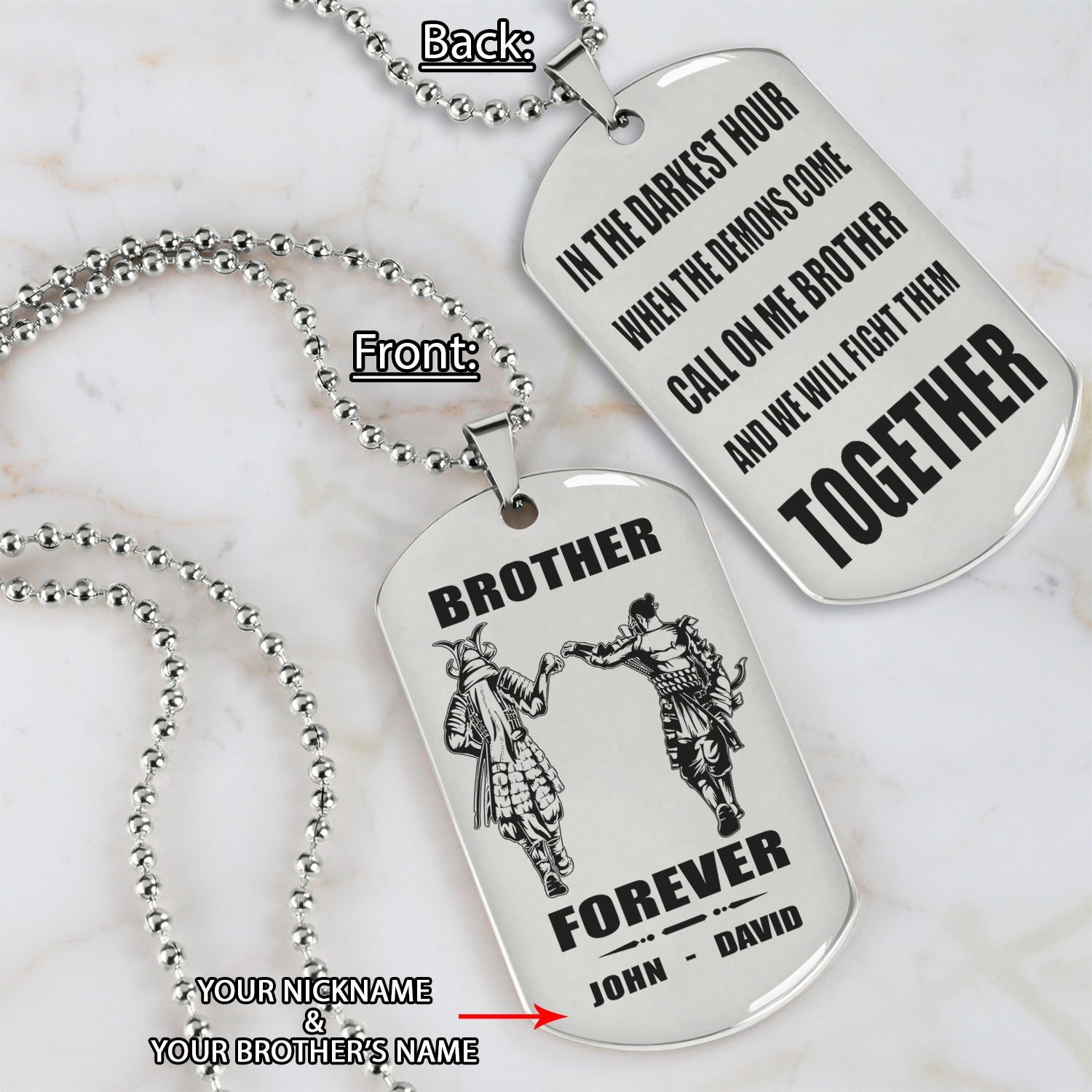 Spartan Call on me brother engraved white dog tag double sided. gift for brothers