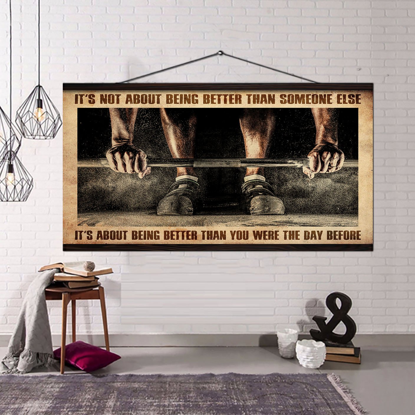 NOTICE: This is a more casual and often more artistic style of canvas presentation. A hanging canvas typically consists of a canvas fabric sheet with two wooden bars attached at the top and bottom. The top bar includes a hanging mechanism, usually a string or a cord, for easy display. This style allows the canvas to hang freely against the wall, giving it a slightly informal, bohemian feel. The canvas in this case can be easily rolled for storage or transport.