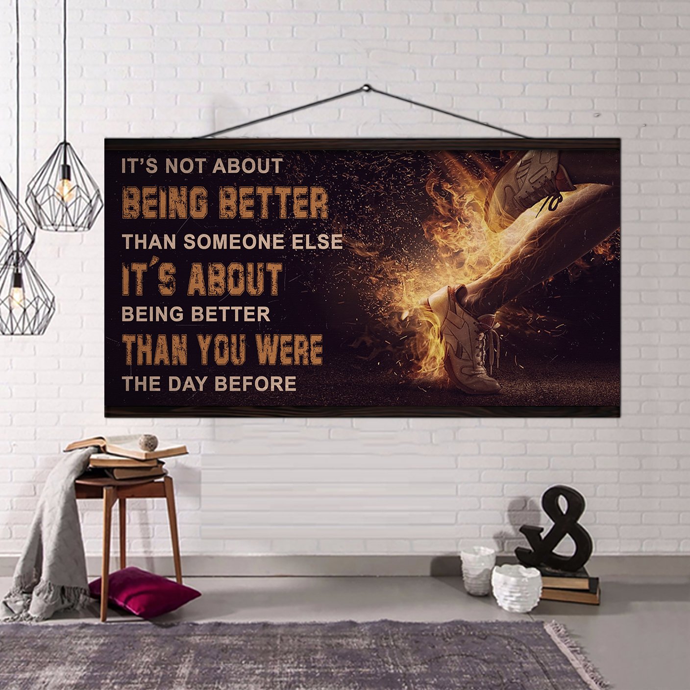 NOTICE: This is a more casual and often more artistic style of canvas presentation. A hanging canvas typically consists of a canvas fabric sheet with two wooden bars attached at the top and bottom. The top bar includes a hanging mechanism, usually a string or a cord, for easy display. This style allows the canvas to hang freely against the wall, giving it a slightly informal, bohemian feel. The canvas in this case can be easily rolled for storage or transport.
