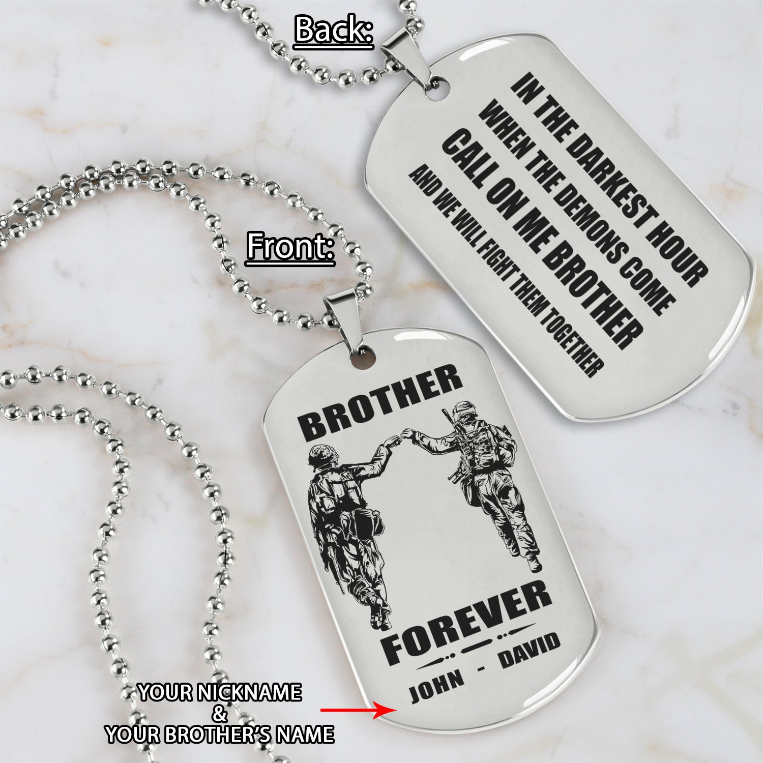 Soldier Call on me brother engraved dog tag double sided , Gift for brothers Brother Forever